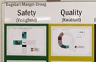 Klassiek binnen productiebedrijven zijn de dagelijks te bespreken zogeheten 'SQCDP-borden'. Of een variatie erop, zoals hieronder is weergegeven. Goed voor 'Running-the-business': deze visuele borden zorgen ervoor om focus op relevante zaken tijdens overleggen in de productie te houden.